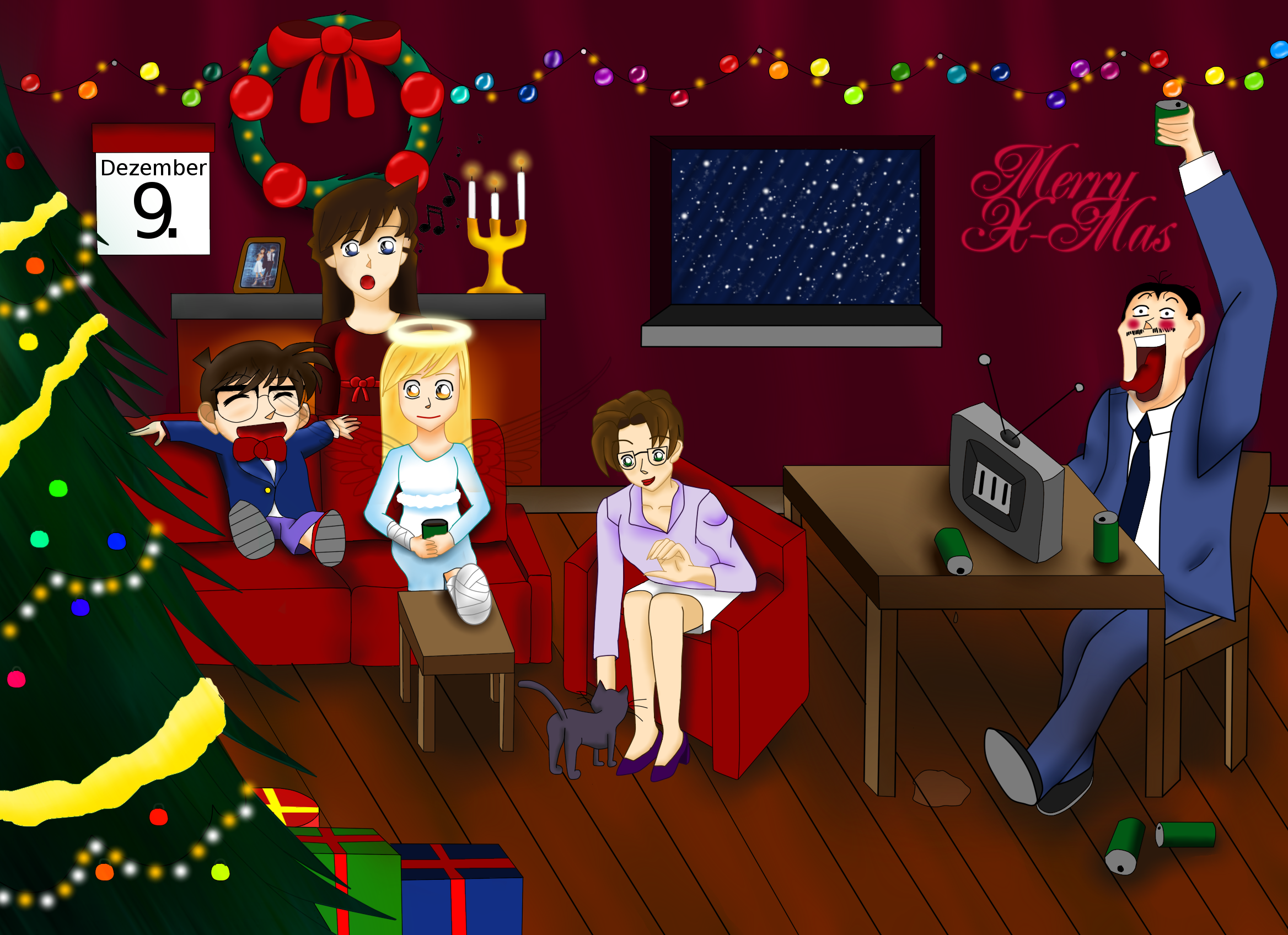 Ich hoffe man sieht das das Christkind einen kleinen Unfall hatte und von Conan und Co wieder gesund gepflegt