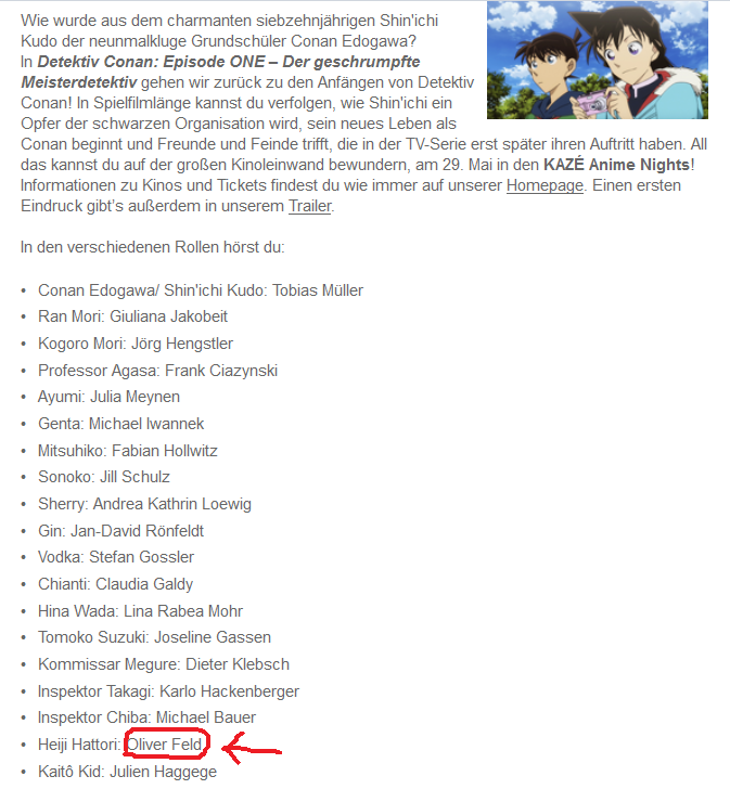 Da hat @Peter der DC Fan recht. Wir berichteten im Februar, ich frage mich aber wirklich, wer das alles immer einträgt. Das ist in der Synchronkartei leider sehr undurchsichtig, weshalb es (auch bzgl. Detektiv Conan) schon zu Fehleinträgen kam.Peter der DC Fan schrieb: