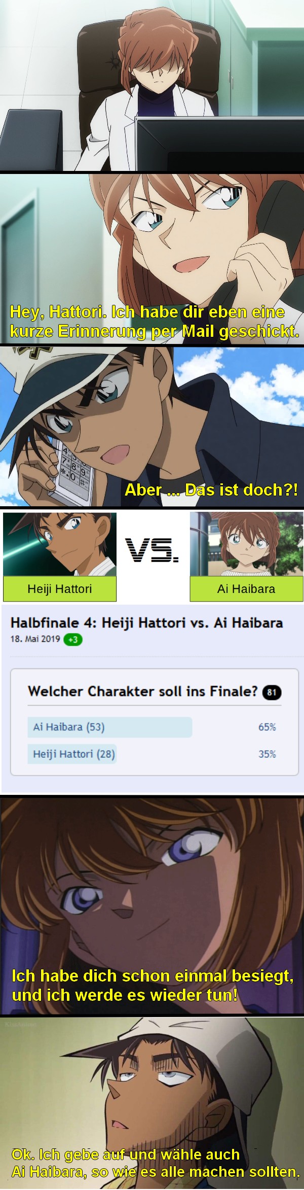 27 17. Mai 2021, 21:45 Nein, das darf nicht passieren lasst bitte Kaito nicht Verlieren, er hat es verdient zu gewinnen